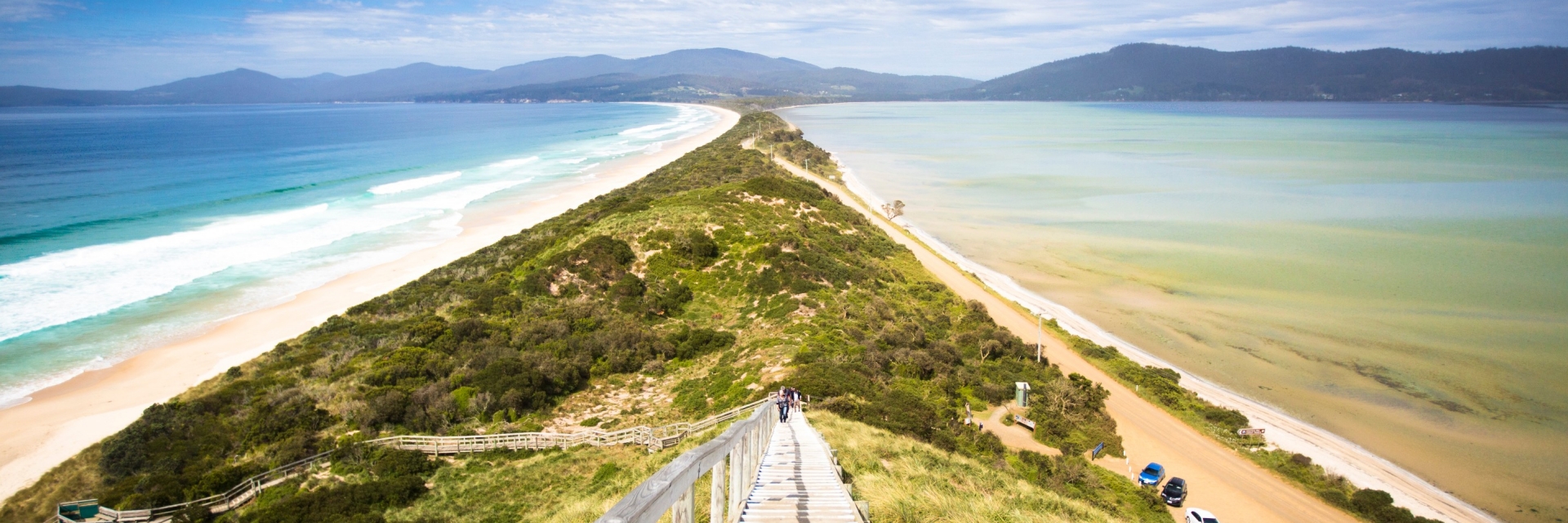 Balayée par les vents, Bruny Island mesure environ 360 km² et se trouve scindée en deux par un isthme étroit et sablonneux connu sous le nom de The Neck (« le cou »), qui constitue l'une de ses principales attractions. Gravissez l'escalier en bois pour admirer la vue époustouflante sur Adventure Bay. Vous pouvez aussi admirer cette côte magique depuis la mer lors d'une croisière en milieu sauvage et observer les dauphins, les otaries à fourrure et les pingouins de Bruny Island. L'île offre de nombreuses plages où se baigner et faire du surf. On y trouve aussi le parc forestier de South Bruny National Park. Bruny Island est aussi une destination gastronomique et œnologique de choix. Goûtez le fromage artisanal de la Bruny Island Cheese Co et dégustez des huîtres fraîchement écaillées chez Get Shucked. Pour atteindre Bruny Island, prenez le petit ferry depuis la ville de Kettering, à 30 ou 40 minutes en voiture au sud de Hobart.