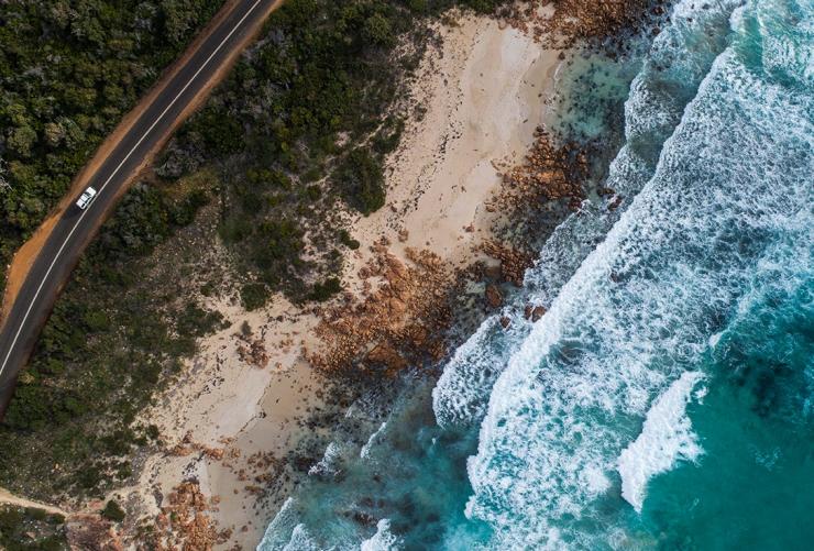 Road trip de rêve : Escapade isolée sur la côte sud-ouest de l’Australie Occidentale, Eagle Bay n’est qu’une des nombreuses étapes de ce voyage de plus de 1 000 kilomètres entre Perth et Esperance. Également appelé Great South West Edge, cet itinéraire vous offre tout, depuis la découverte des villes jusqu’à la visite de domaines viticoles, en passant par des balades sur la côte et des escapades en forêt. La plage paradisiaque d’Esperance, non loin des kangourous de Lucky Bay qui se prélassent au soleil, doit figurer sur votre liste d’incontournables.