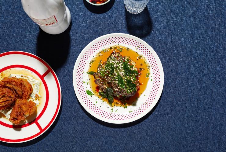 Lezat dan autentik, Osteria Oggi adalah tempat makan pasta dengan nuansa piazza Italia di jantung kota ini. Cerah dan modern dengan atap bergaya pergola di atas lantai batu. Anda dapat bersantap di meja dengan bangku panjang atau di dalam booth; batang beton panjang berfungsi sebagai area makan lainnya. Hidangannya mencakup tagliatelle buatan rumahan dengan kepiting blue swimmer dan kelinci rebus dengan kale.