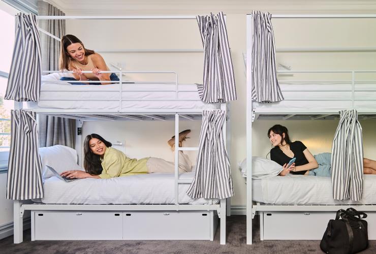 オーストラリアにはラグジュアリーなロッジやグランピング型の宿泊施設が多数ありますが、低予算で利用できる快適な宿泊施設も十分にあります。オーストラリアのホステルは、割安で楽しい雰囲気に溢れた宿泊施設です。便利な立地にあるので、出費を抑えながら見どころを巡るのに最適なオプションです。また、滞在中に他の旅行客と仲良くなれるチャンスもあります。また、オーストラリアには大自然の絶景が望める見どころが各地にあるので、キャンプも一案です。キャンプ場の多くでは、満天の星空を眺められるといえども屋外で寝ることに不安がある方のために、設備が整ったキャビンも用意されています。