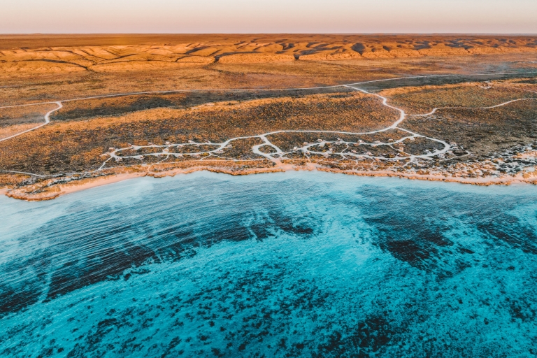 오전에는 케이프 레인지 국립공원(Cape Range National Park)의 바위투성이 자연을 탐험하고, 이어서 다시 남쪽으로 이동해 시원한 코럴 베이(Coral Bay)로 갑니다.