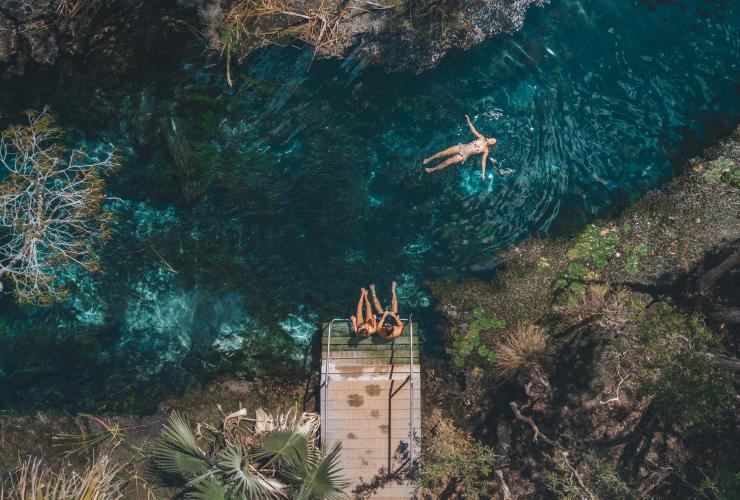 凱瑟琳(Katherine)距離達爾文只有三個多小時的車程,可能是通往尼特米魯克國家公園最為人熟悉的路徑。但是,抵達尼特米魯克/凱瑟琳峽谷以後,您會發現還有更多值得探索的地方。Katherine Outback Experience是一個歌頌內陸地區生活的表演,以馬匹和工作犬匯演開始,配合現場音樂和叢林故事。若要享受輕鬆的度假旅程,您可以前往埃爾西國家公園(Elsey National Park)內的苦泉。溫泉供水的溫泉池注滿天然的暖水,靠近同樣受歡迎的馬塔蘭卡溫泉(Mataranka Thermal Pool)。接下來,您可以在Top Didj享受2.5小時的文化體驗,沉浸在該地區的原住民文化當中。在體驗期間,您將會向頂端地帶原住民藝術家Manuel Pamkal學習傳統繪畫、武器和工具,然後可以將自己的藝術作品帶回家。